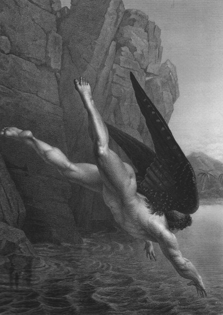 Some religious groups teach that he originated as an angel, or something of the like, who used to possess great piety and beauty, but fell because of hubris, seducing humanity into the ways of falsehood and sin, and has power in the fallen world