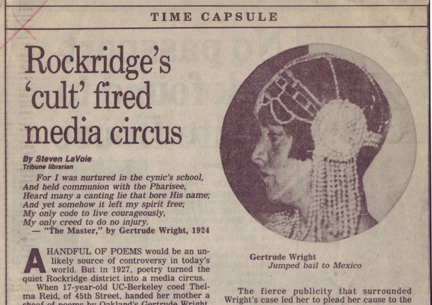 In 1927, 17-year-old Thelma Reid had just begun her first year of college at UC Berkeley. She was living on 45th street in Oakland’s Rockridge district with her family and did many of the typical things a college coed did—went to class, helped around the house and did her homework. She never expected her studies would spawn one of the biggest scandals in Rockridge history. But then again, it wasn’t ordinary homework.