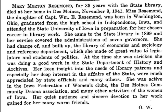“The couple had nine children; eight girls and but one son — Martin — who served with Lucas County boys in Company C of the 13th Iowa Infantry and died in service in 1862. When James Roseman died in 1887, there was nobody by the name of Roseman left in the county.”