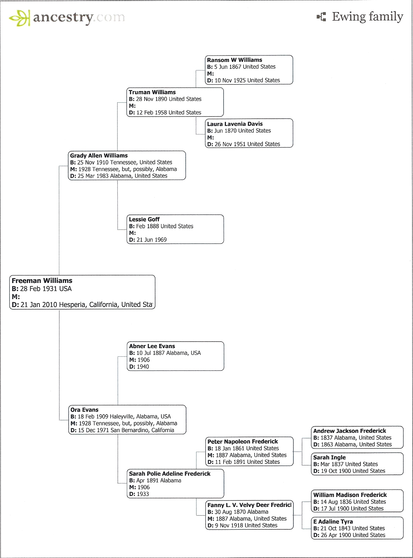 Above is Hollis’ genealogy, and I believe his parents, Freeman Williams, and Ethel Berry. Welcome to the most exciting genealogy on the internet! Well done! Is that a photo of Hollis on the wall?
