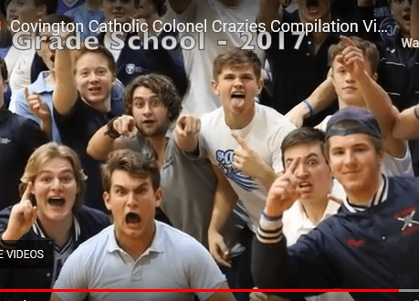 Other students, some wearing Covington clothing and many wearing “Make America Great Again” hats and sweatshirts, surrounded them, chanting, laughing and jeering. A student wearing clothing from Owensboro Catholic High School was also present.
