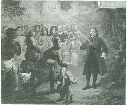 Prince Carl was appointed commissioner general by the Adelsverein in May 1844 to lead its colony in Texas. Each head of household was required to deposit 600 gulden (300 gulden for a single person) with the Adelsverein to cover transportation and housing at the colony and as credit to draw upon until they made their first harvest.[4] The first Adelsverein-sponsored immigrants arrived in Galveston in July 1844. They traveled from Galveston to Indianola in December 1844, then moved inland to land grants acquired by the Adelsverein near Comal Springs. Prince Solms named the first colony New Braunfels in honor of his homeland.