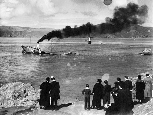 One of the first feature films made in the state was The Fisherman’s Bride, a 1908 silent film produced by Col. William N. Selig’s Polyscope Company. Shot in Astoria at the mouth of the Columbia River, the film shows two men vying for a young woman’s hand. She chooses, but the unsuccessful suitor has his rival shanghaied. The Coast Guard rescues the groom-to-be and delivers him to the wedding. That same year Selig converted an old mansion in Los Angeles to a production studio—a movie factory—and kicked off the West Coast expansion of the film industry.