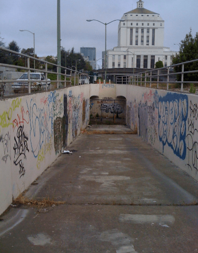One of the biggest mistakes of my life was to not walk thru that tunnel to the Oakland Coliseum in 1961 to see Bobby Blue Bland. Bobby was my man. I had made plans to see Ed Howard’s film, but, I got stuck in the middle of ‘The Tunnel of Fear’ and had nothing nice to say about Oakland. I didn’t go. I and my friends feared for my life. I did not mean to tempt fate, but, there it was, lurking in the dark, waiting for me. Ed said he snuck into the Oakland and Paramount theatres. Was it to see that strange introduction of the movie ‘House of Usher’? I believe Roger Coreman appeared on stage to warn us we might suffer heart attacks. They had a cable coming down from the balcony on which slid a skeleton. This film is of historic significance. So, here is the Tunnel of Racial Fear. If a white boy went down in there, a black boy would cut you ear to ear with a razor. The whole design was a set-up. Blacks didn’t go down there unless they scare a white, who will freak out – and go crazy on them! After encircling the Oakland Coliseum with fast roads, they stuck that tunnel in so you could leave the beautiful safe shore of Lake Merritt, and go to thy doom. Of course me and my best friend, Bill Arnold, found many good reasons to go down in that tunnel – late at night. “As artists, we are obligated to go where normal people fear to go!” And, there it is, the ‘Oakland Bohemian Motto’. Were there such a thing as a Black Bohemians? Ed said he was one of the first Oakland Lowriders. But, he became a designer, an artist of sorts. In this photograph you see the tunnel, and the apartment where the Black Panthers lived in a penthouse. Huey knew about the Beats. He studied history. Being innovative was a big part of the New Oakland Cool. We crossed lines. We crashed through barriers. Our history is one of the most culturally interesting experiences the world has ever seen. The Black Panther exhibit at the Oakland Museum was the most viewed show, ever, and was held over for – an encore! http://www.rollingstone.com/culture/features/huey-newton-twenty-five-floors-from-the-street-i-lost-my-capacity-to-hate-i-just-disagree-19720803