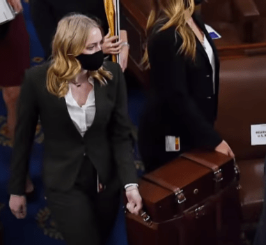 Woman pictured carrying electoral votes at the Capitol shares story behind photo