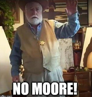 If this blog is about anything, it is about the Showdown between Roy Moore, and Sheriff Two Stars in the Cultural Warfare Gun&Bible Battle of the century. I have already lost a half dozen of my Liberal Friends over this one, because they wanted to believe Jesus was good for us, even when wielded by a Conservative Maniac who piled sandbags around his bunk in Vietnam, lest he be fragged.