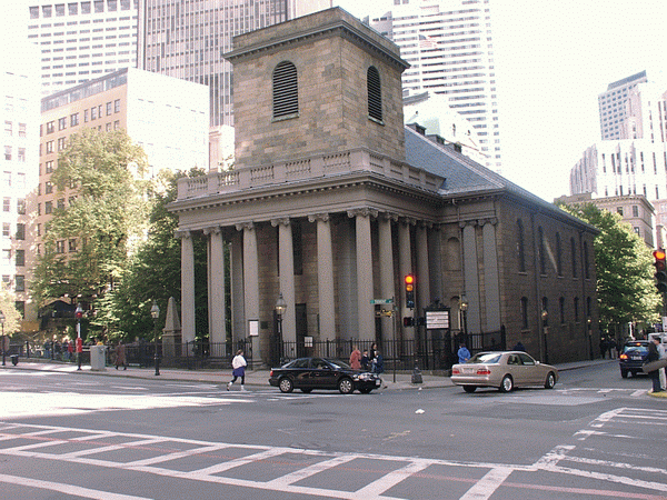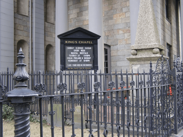The King’s Chapel congregation was founded by Royal Governor Sir Edmund Andros in 1686 as the first Anglican Church in colonial New England during the reign of King James II. The original King’s Chapel was a wooden church built in 1688 at the corner of Tremont and School Streets, where the church stands today. It was situated on the public burying ground, now King’s Chapel Burying Ground, because no resident would sell land for a church that was not Congregationalist (at the time, the Congregational church was the official religion of Massachusetts).