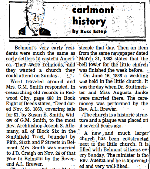 “According to Belmont Historical Society records, Dorothea and Carl August Janke sailed around Cape Horn from Hamburg, Germany, in 1848. After landing in San Francisco, they settled in Belmont in 1860”