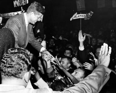 I ask you to march with us. I want to make it clear that the fight in 1960 is between those who are comfortable and those who are concerned, between those who want progress and those who look to the good old days, between those who stand where Dewey stood and Landon and all the others, and those who stand where Woodrow Wilson stood and Franklin Roosevelt. I come here to Oakland in the last five days of this campaign, and I ask your help in moving California and the nation and strengthening the cause of freedom. Join us. Move with us. Let’s go. (Applause)