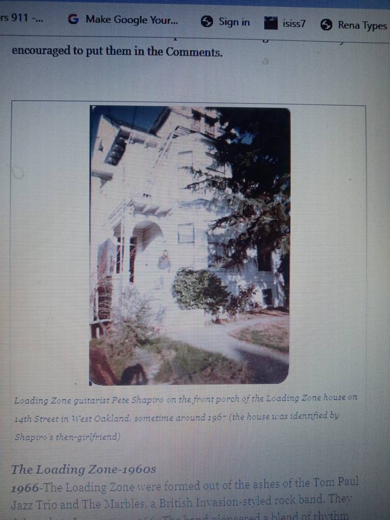 Christine W. wanted me to buy the house next door so we could be close to one another. I asked her to take pics. It was condemned – and torn down a month later! If Kamala loses, there will be trouble. If she wins, there will be trouble. The Zone, and other Oakland based bands, might be reborn in a new revolution. Count the mixed-race bands. Lawhern did not want my Kamala posts! Now, Belmonts going to get a small book! I had plans to reborn The Charlatans there. But…..