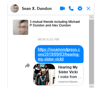 I just got a phone call from Shamus Dundon at 4:20 P.M. on September 3, 2019. My nephew told me his mother, my sister, is dead. Last night I posted this memroy, on Memorial Day. I sensed she was gone and I did not get to say goodbye. Vicki Presco died Saturday, August 24, 2019 at 7:30 P.M. I was not invited to my sister’s funeral. Here is what I blogged yesterday;
