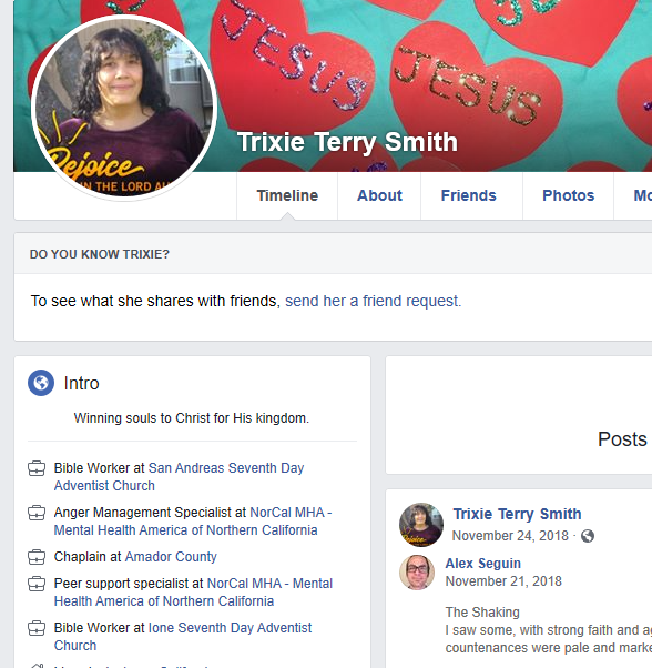 I took note that Cheryl only had one friend, named Trixie, who is a Jesus Freak and caregiver for the mentally ill. She has posted a video of our Loony President dividing America some more. He knows he has a million mentally ill Americans – at least – backing his crazy rabble rousing. This is – CRUEL! Trixie is taking advantage of Cheyl. She is on a mission – for Christ!