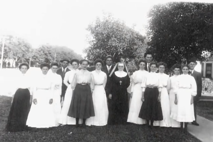 Here is a video that contains a photo of Mother Mary Dominica Wieneke, Major Superior of the Sisters of Saint Francis of Dubuque. Her cousin, Mary Magdalene Wieneke-Rosamond, was my grandmother, the mother of Rosemary Rosamond.