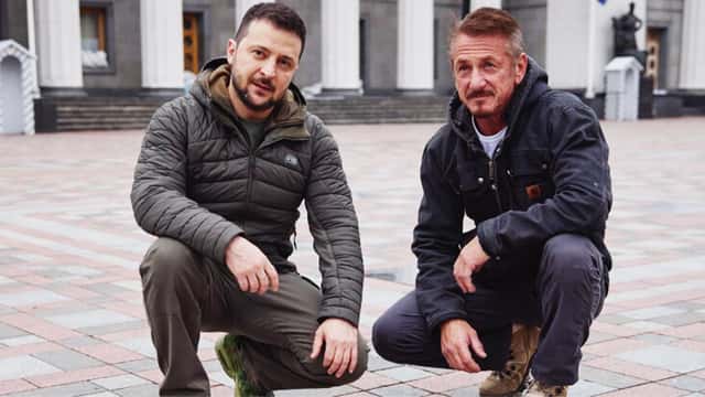 Another wall holds a frame containing a Ukraine Order of Merit medal. Penn is 63 and dressed in a simple T-shirt and blue jeans. His hair is now a shock of white. He speaks of the United Nations, surface-to-air missiles and F-16s. Mostly, Penn talks about his friend Ukrainian President Volodymyr Zelenskyy, the subject of his documentary “Superpower,” which premieres on Sept. 18. He sounds like an affable, between-gigs diplomat enjoying some downtime before a semester at Harvard’s John F. Kennedy School of Government.