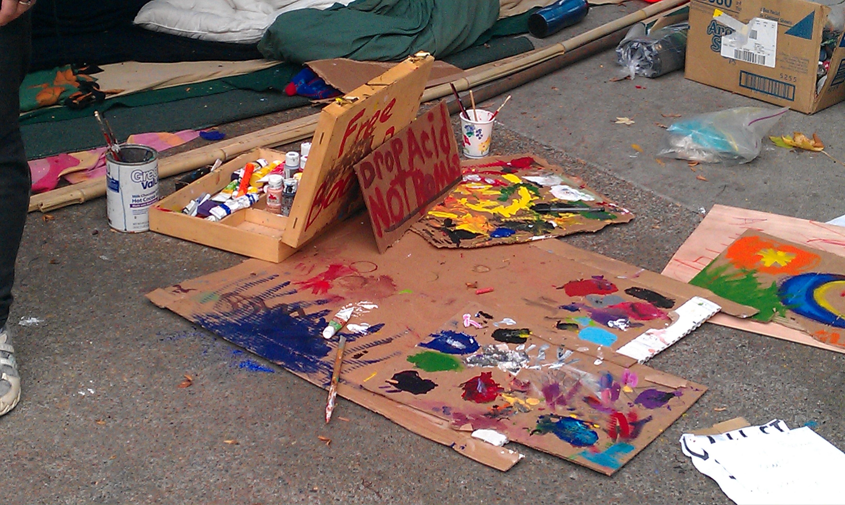 Belle Burch and I would have made great allies in that we were both advocates for the homeless. That’s my yellow Toyota in the pictures taken at OCCUPY Eugene. I love the child wondering about the make your own sign station. Consider Pan’s Labyrinth…