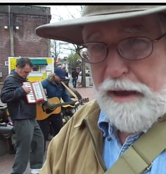 The gentleman that came up and played is acordian in Kesey Square, approached me a year or so earlier at OCCUPY the market and we improvised a song. Before OCCUPY I came up with an idea on saving the Post Office that would give the homeless a place to sit. Hollis was sitting at a MX station listening to the World Series, when the MX cop told him to move. This is a Vet who had nowhere listen to America’s Game.