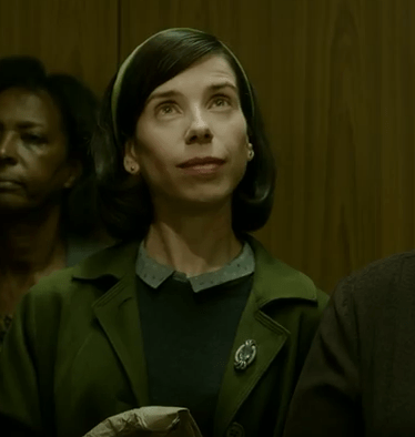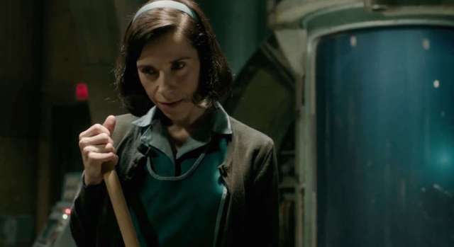 It’s difficult to discern the plot of “The Shape of Water” by watching the trailers. It turns out, the movie is a love story between a sea creature and a mute janitor (Sally Hawkins). Even more specific than a love story, it’s a fairy tale princess story at heart. Writer/director Guillermo del Toro makes that clear from the opening words in the film, in a voice over that declares all that follows the story of the “sleeping princess”. In fact, Hawkins is reminiscent of multiple princesses: Snow White and Ariel, to name just two.