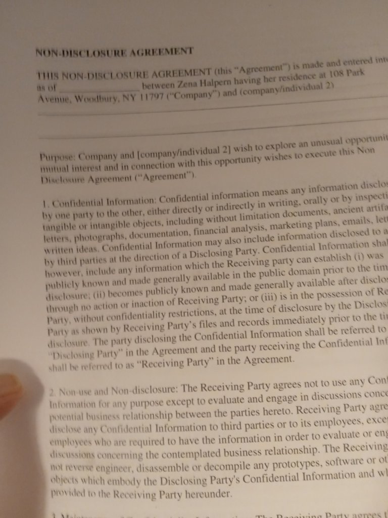 On this day, April 1, 2025, I John Presco made the discovery of the age! A week ago I went through my papers and found the Non-Disclosure Agreement Zena Halpern sent me to sign. I didn’t sign when she introduced a woman who found me and mystudy of the name……….