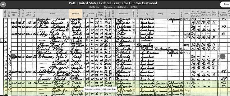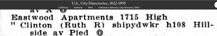 - I found on a 1940 Census that they were living at: 4003 Ardley Ave, Oakland, California in Oakland there is a Clinton Sr and Clinton (Clint) Jr living there