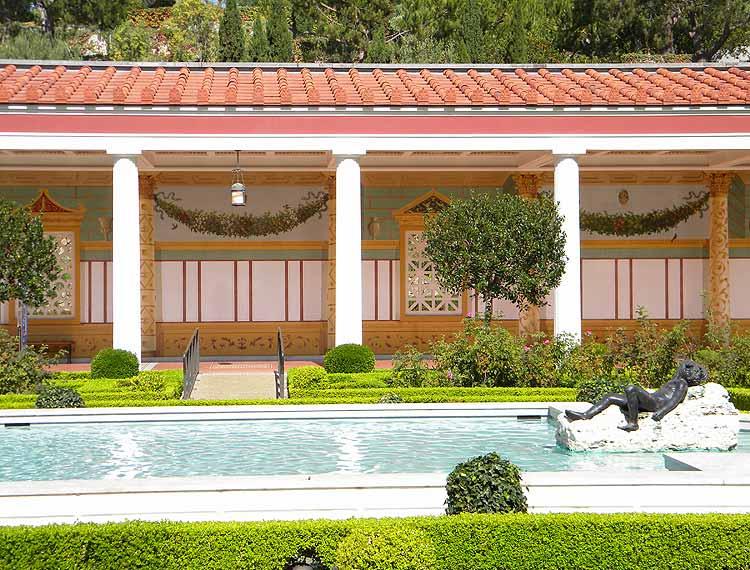 The Getty Villa was designed and constructed as a full-scale replica of the Villa dei Papiri at Herculaneum, in what is now southern Italy. From 1974 to 1997, the Villa housed the Getty Museum’s entire art collection. European paintings, drawings, sculptures, manuscripts, decorative arts and some photography were moved in 1997, when the Getty Center opened in Brentwood. The Villa was later closed for renovations and reopened in 2006 after a $275-million project transformed the site into an educational center and museum dedicated to ancient art.