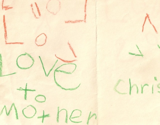 My late sister, Christine Rosamond Benton, the mother of Drew Benton, lived in Concord California. Here is her drawing of a rose, along with handwritten message. This may be a Mother’s Day Card assignment when she was in kindergarten. Thjs creation comes nowhere near what Julie Lynch said, my sister’s kindergarten said;