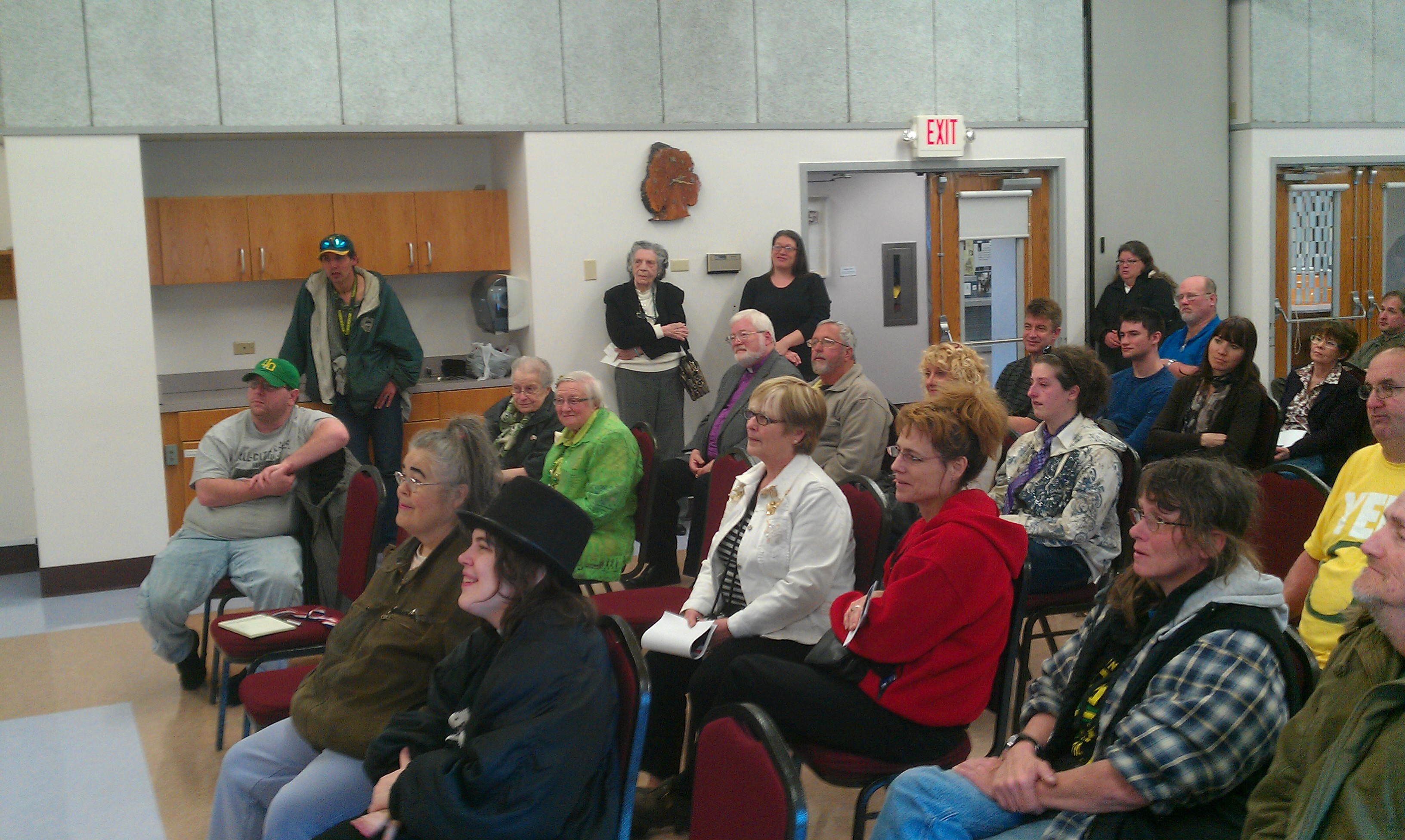 Memorial for Mr. H. After we were thrown out of the vacant building we were going to hold the memorial, by the very rude owner, Pat of Gyzmobytes rented space in the Campbell Center. Many folks who loved H went to the first site and missed the event. Steve Martin, Hollis’ best friend, did much to make this work. He is in Duck hat and standing up.