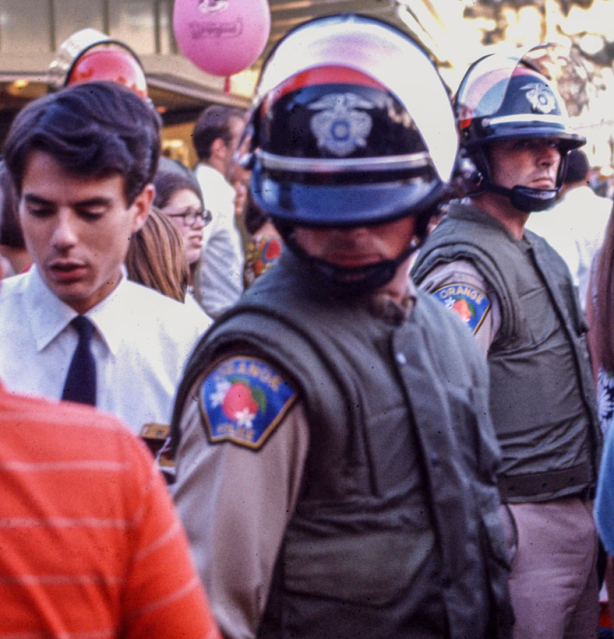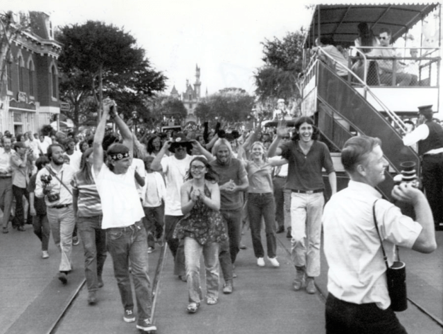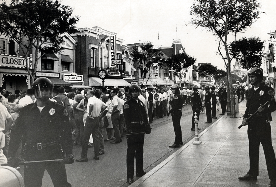 Disney got wind and began preparing for the oncoming “invasion” by asking the Orange County Police Department to be on hand. When the officers showed up before the park opening, they were decked out in full riot gear. An overreaction, to be sure, but they had good reason. 200,000 of the rebellious youths were expected to show up, an extremely high number that tends to scare local authorities. In the end, however, only about 200 came to the park that day. David Sacks was later quoted as saying, “Of the 200 quote “Yippies“, I’d say 100 of ’em were just freaks who were really apolitical but thought it would be fun to come to Disneyland and trip around that day”. 25,000 regular guests were also in attendance.