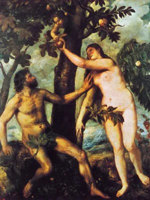Adam and Eve in the Garden of Eden, oil painting by Titian, c. 1550; in the Prado, Madrid.