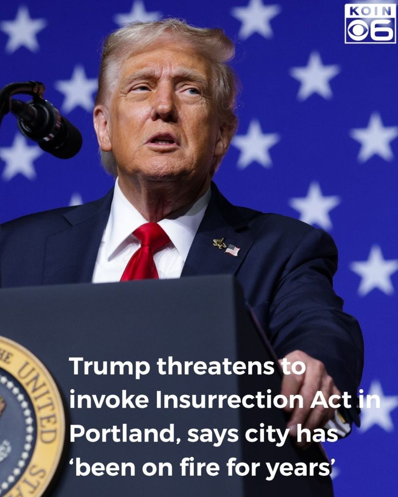 PORTLAND, Ore. (KOIN) — President Donald Trump told reporters on Monday that he would consider invoking the Insurrection Act as a way to send federal troops to Portland and avoid legal obstacles.