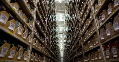 A Harvard Library storage facility. “To this day Israel is under threat of a nuclear attack, so the ‘backup’ prepared in Berlin’s kingdom is important,” says writer Ben-Ezer. “When I told him that, he replied that there’s no need for a catastrophe to justify his project.”