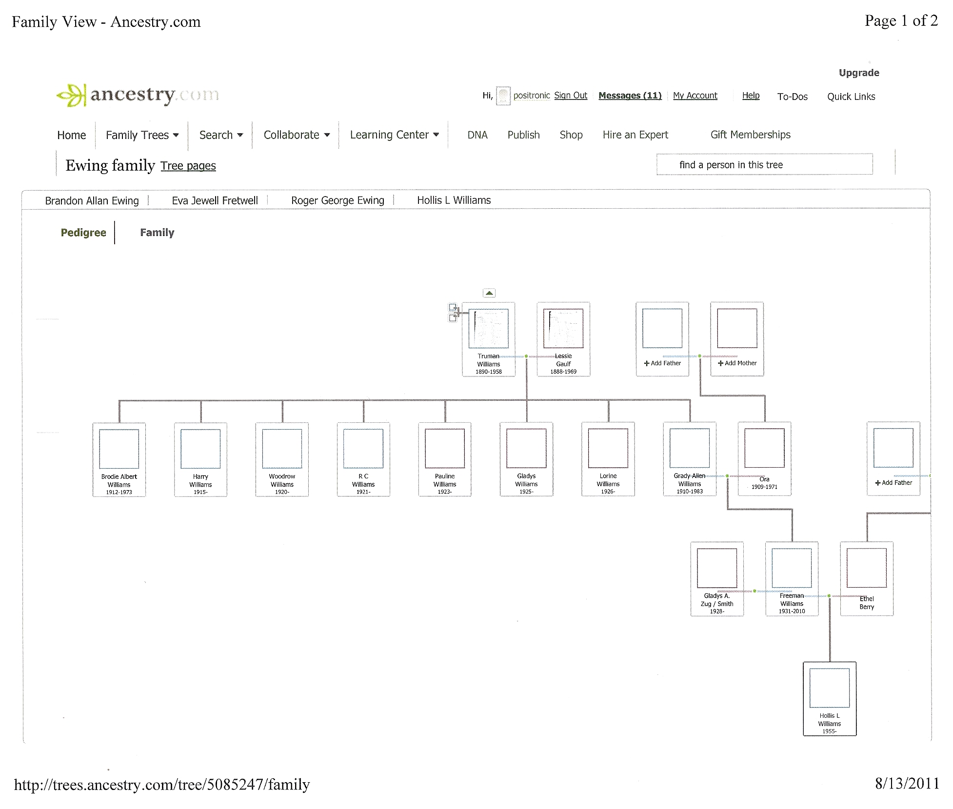 Above is Hollis’ genealogy, and I believe his parents, Freeman Williams, and Ethel Berry. Welcome to the most exciting genealogy on the internet! Well done! Is that a photo of Hollis on the wall?