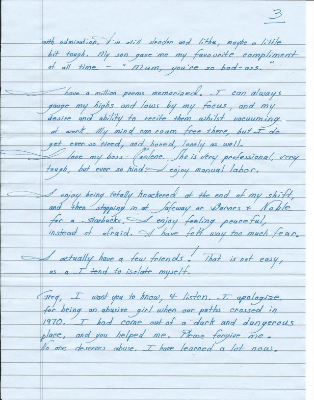 Then I beheld the date on the letter. Your words came to me in my loneliest night from faraway as you wrote them. This is beyond romantic! There is justice in the world, There is love in the world. I will never be that alone again. You brought me a glimmer of great hope. You freed me of something that I can not describe. What a gift you have always been, and, a inspiration. My family took everything from me, but, they didn’t get you! They didn’t get you!