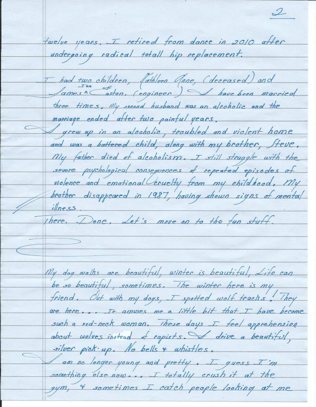 Michael and James, are dead. Jeffry might be alive. Rena and Jeffrey got along famously. She told me she only felt comfortable talking to boys. Jeffrey was a schizophrenic. I suspect Rena….is to. A month after she was home, I called and her grandmother answered.