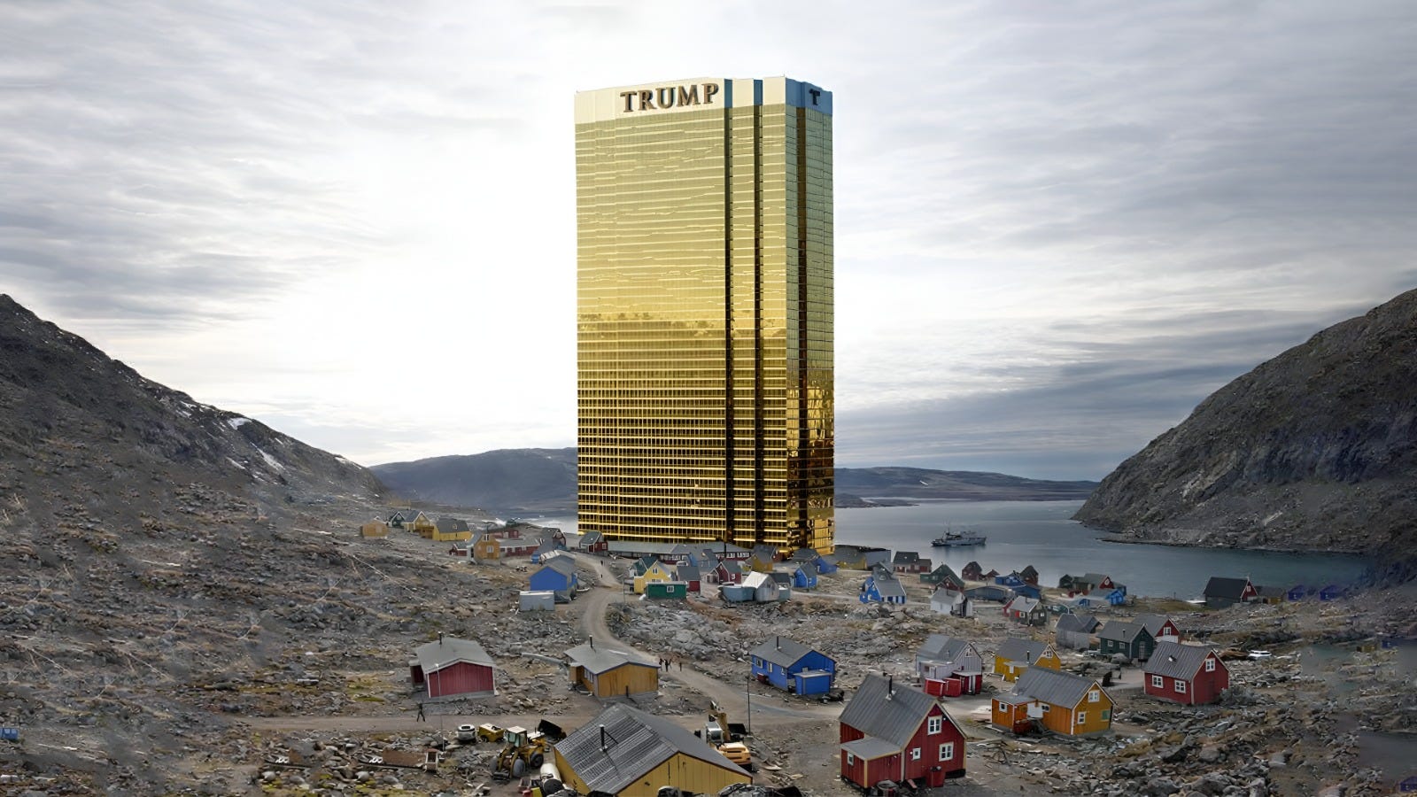 In a tweet on Monday, the president posted a digitally altered photo of a golden Trump Tower superimposed on a seaside village with the caption, “I promise not to do this to Greenland!”