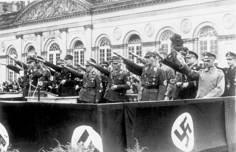 Deutschland 1933: Reichstreffen des Reichsbundes Volkstum und Heimat in Kassel. Unter den offiziellen Gästen sind Prinz Philipp von Hessen 1.R.2.v.r. und Generalleutnant Wilhelm Ritter von Leeb 1.R1.v.r.