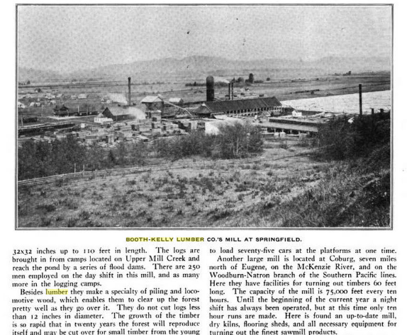 The company that would make Springfield a major industrial center was the Booth-Kelly Lumber Company, which was incorporated in 1896 by Robert and Henry Booth and George and Tom Kelly.