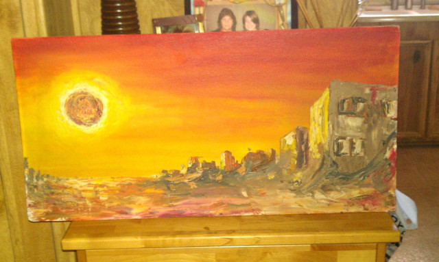 In 1960 I did a painting of the end of the world. I was going to send it to the candidate that won the election that year – but it was not dry! I may have sent my letter I wrote. I had a copy, but it got lost. I had just turned fourteen.
